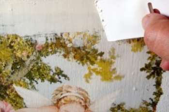 После полного высыхания края рисунка маскируются шпатлевкой для плавного перехода.